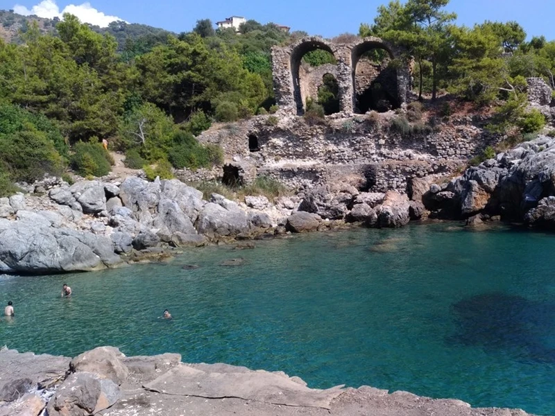 One of the first stops on the tour is Syedra Castle, which stands out with its elevated position and wide coastal views. Visitors can see ancient stone structures, city walls, and walking paths throughout the site. Aytap Ancient City is another important stop, offering insight into the region’s past with its seaside location and visible ruins. Antiochia ad Cragum Ancient City is one of the most remarkable historical areas on the route, known for its large size, preserved layout, and surrounding natural landscape.